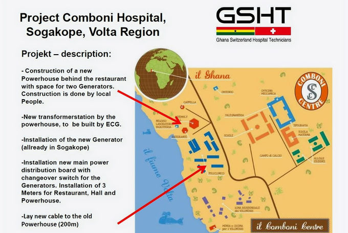 GSHT ist ein ehrenamtlicher Verein, der in Ghana für humanitäre Hilfe und technische Organisationen an Spitälern tätig ist. Alle Mitglieder unseres Vereins, sei es in der Schweiz oder in Ghana, arbeiten unentgeltlich. Politisch und konfessionell neutral beschaffen wir Mittel und Gerätschaften, um Projekte zu realisieren. Unser Ziel ist es, durch Infrastrukturverbesserungen, wie Elektrizitäts - und Wasser-versorgung, den Spitälern die notwendigen Voraussetzungen zu schaffen, dass sie ihre medizinische Versorgungen an der Bevölkerung erfüllen können. Eine zuverlässige und gut funktionierende Stromversorgung ist der Lebensnerv für ein Spital.